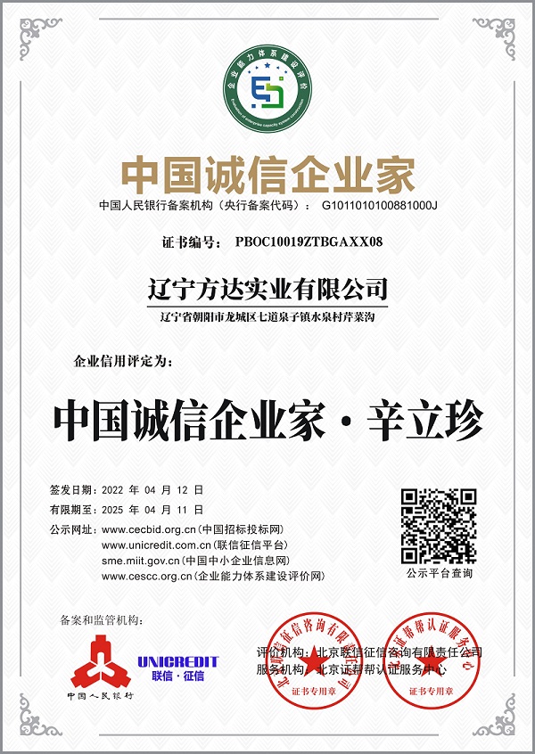 誠(chéng)信經(jīng)營(yíng)示范等級(jí)證書(shū)
